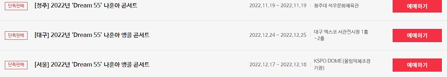 2022 나훈아 콘서트 드림55 앵콜 공연 | 티켓가격 & 예매처